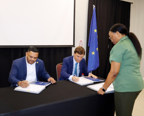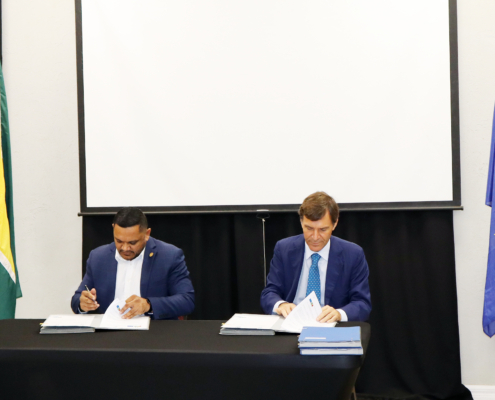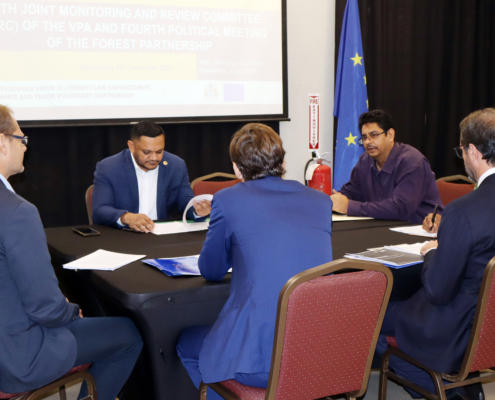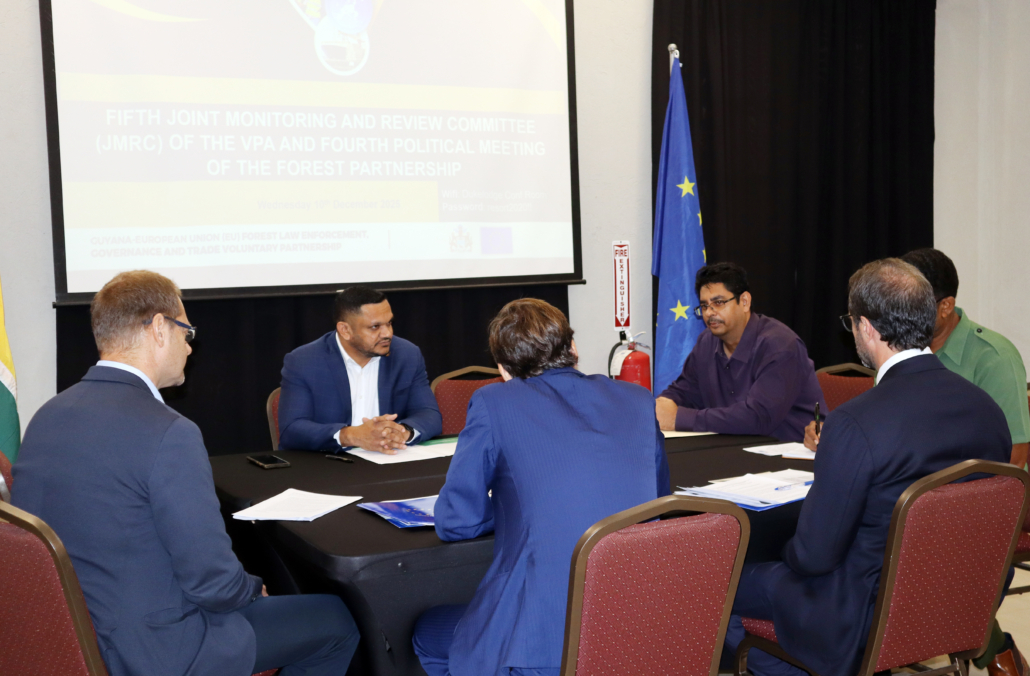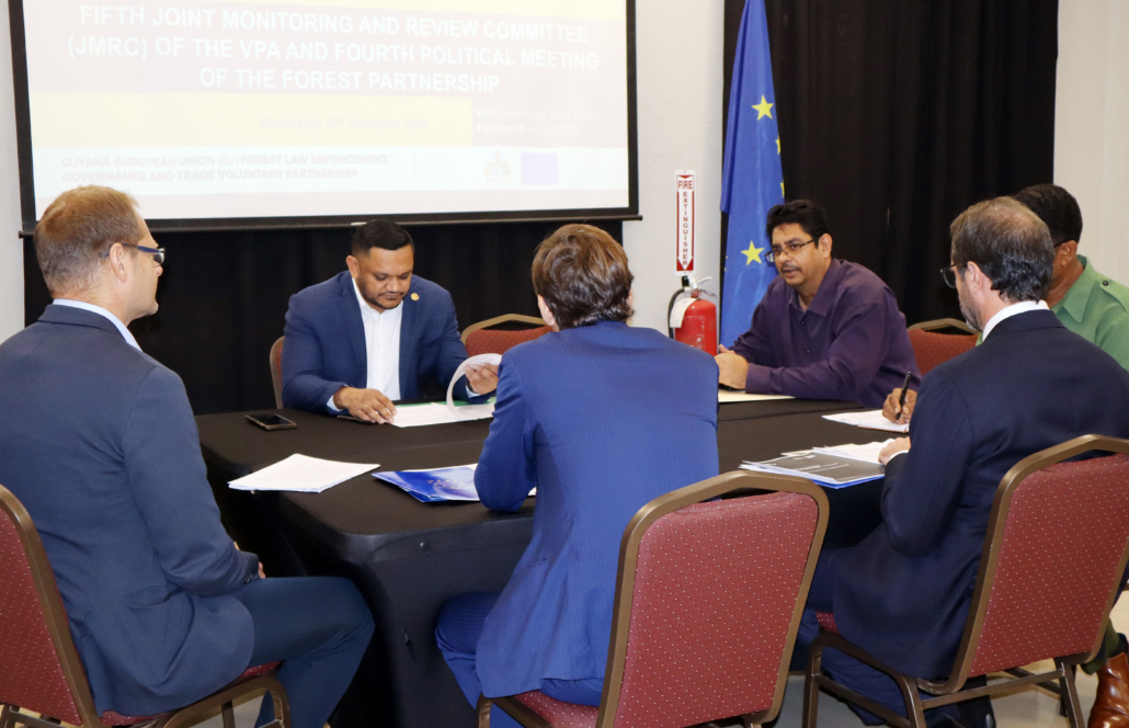 The Government of Guyana and the EU today reaffirmed their shared commitment to strengthening sustainable forest management, forest governance, and the legal timber trade by signing an Aide Mémoire capturing the outcomes and joint commitments arising from the 5th JMRC of the EU FLEGT VPA and the 4th Political meeting of the Forest Partnership. The high-level engagement was co-chaired by the Hon. Vickram Bharrat, Minister of Natural Resources, and Ambassador Luca Pierantoni, Head of the Delegation of the European Union in Guyana.
