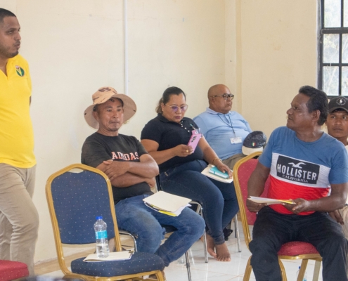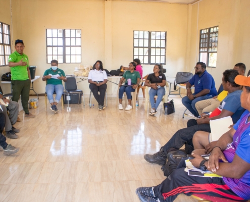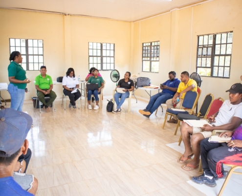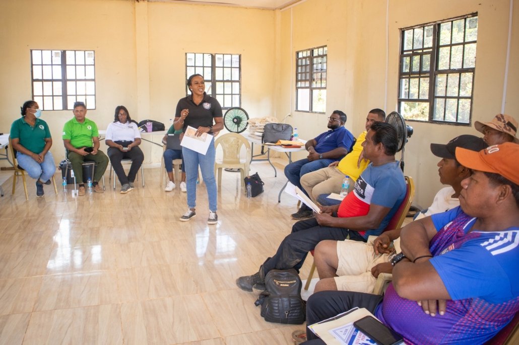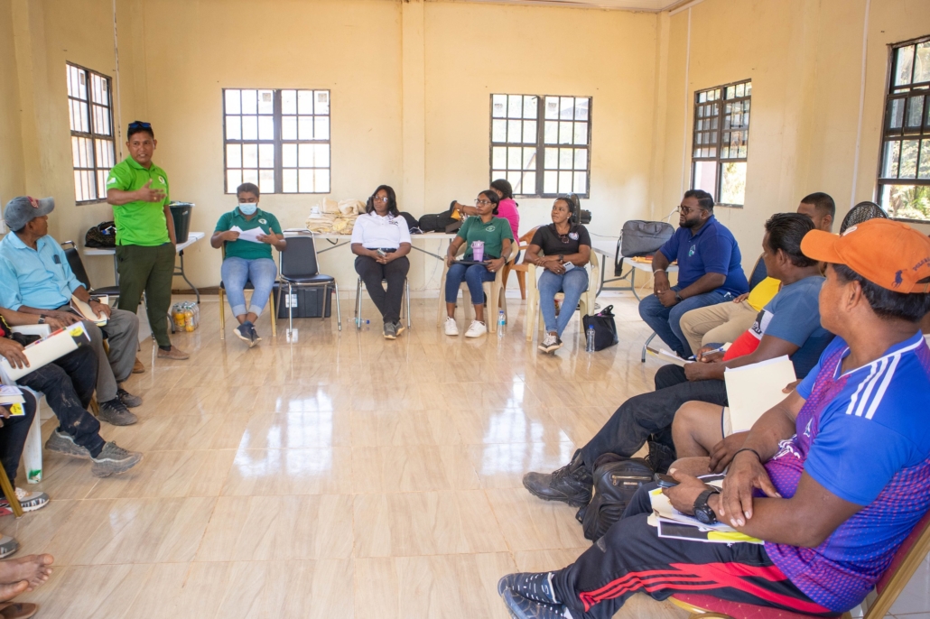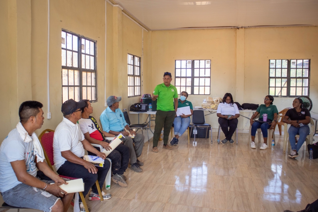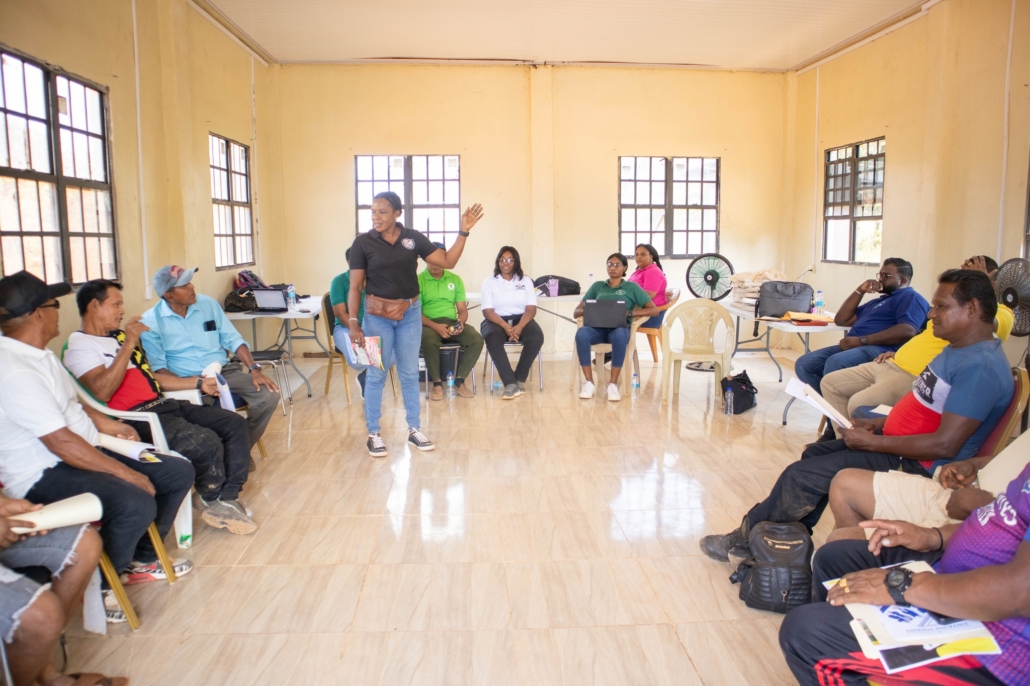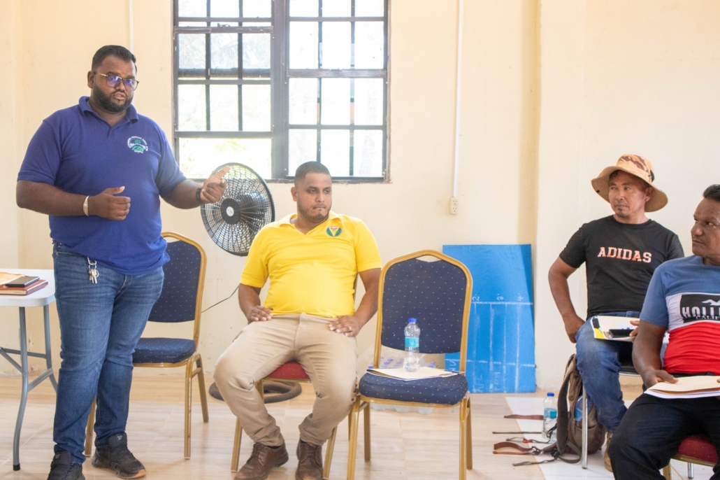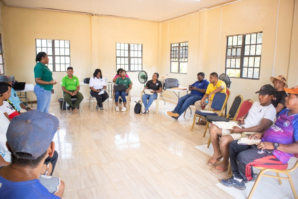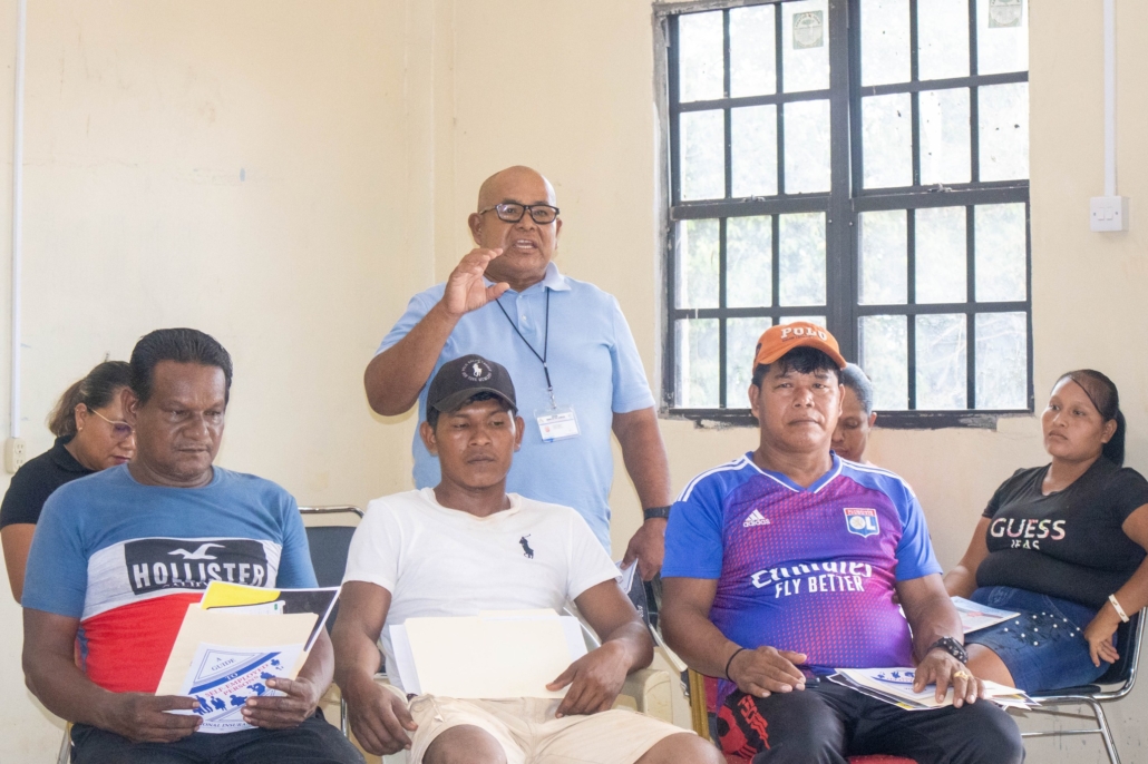 In an effort to strengthen the participation of Indigenous forestry stakeholders through outreaches that will contribute to the VPA’s successful implementation, information processing and knowledge sharing, the FLEGT team from the Guyana Forestry Commission and representatives from the EPA – Guyana, the Guyana_Revenue_Authority, the @National Insurance Scheme – Guyana, and the Ministry of Labour & Manpower Planning Guyana hosted a session with the Deputy Toshao, members of the village council and several FSOs in Four Mile, Port Kaituma on October 15. This session formed part of previous sessions conducted in Kaburi Village, River’s View Village, Batavia Village and Karrau Village.