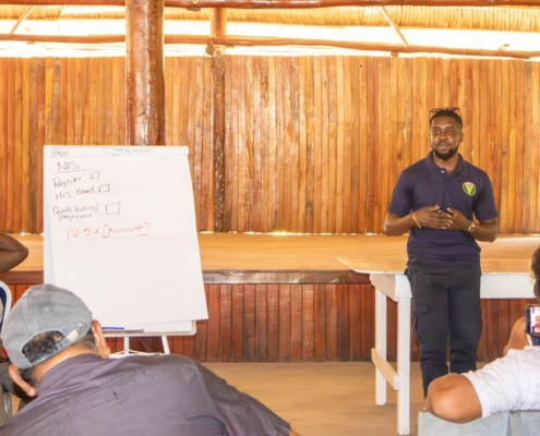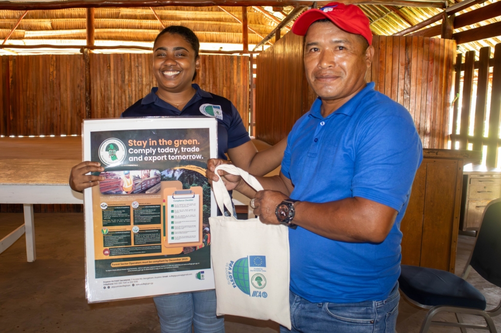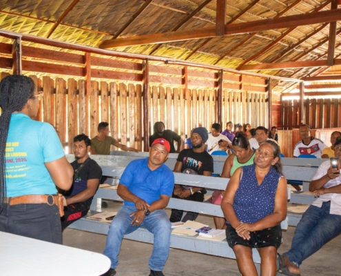 On November 21, the Deputy Toshao, Village Council Members, and FSOs welcomed the FLEGT team from the Guyana Forestry Commission, along with representatives from the EPA – Guyana, the Guyana_Revenue_Authority, the National Insurance Scheme – Guyana, the Ministry of Labour & Manpower Planning Guyana and the Ministry of Amerindian Affairs. The session is part of the EU-funded outreach under the FLEGT VPA Programme, implemented by IICA Guyana.