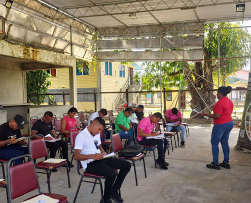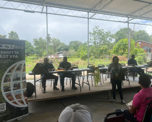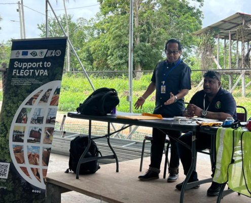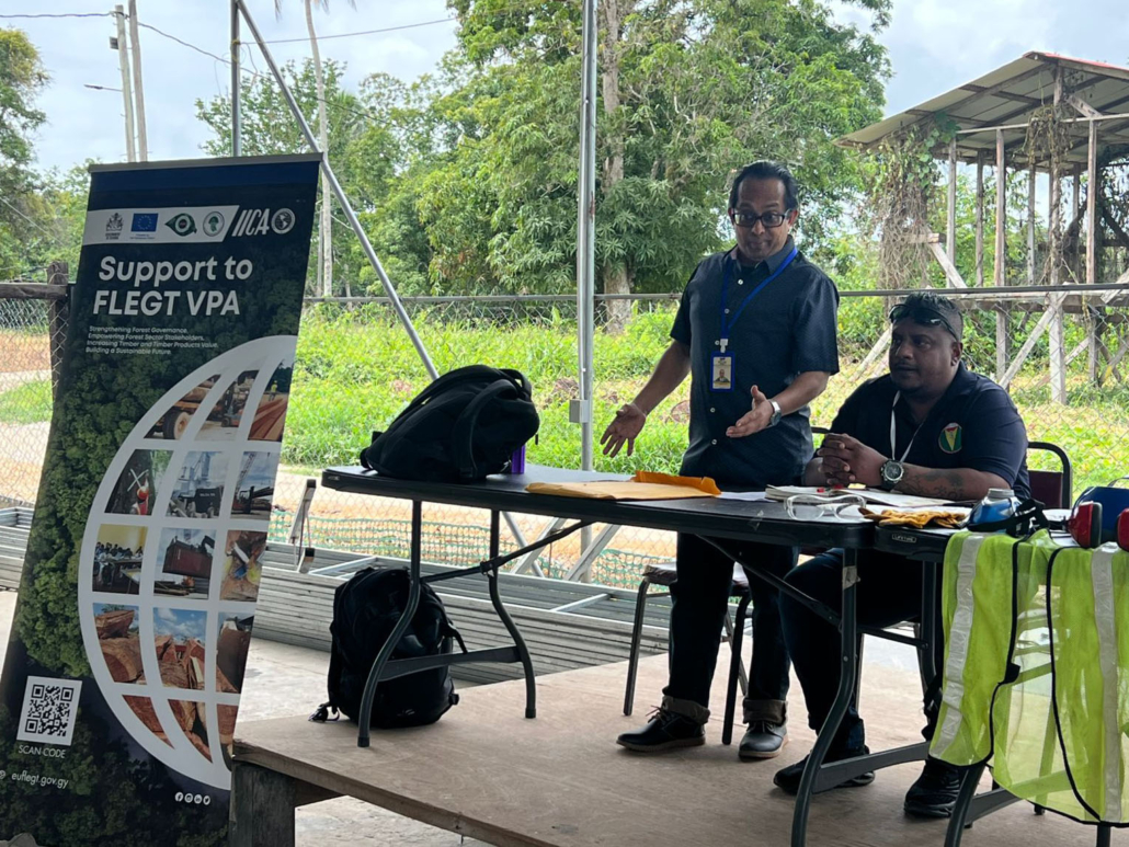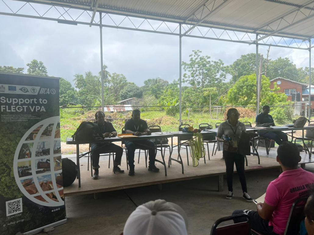 On Thursday, March 05, the Toshao Laurence Vandenburgh, Village Council Members, and FSOs welcomed the FLEGT team from the Guyana Forestry Commission, along with representatives from the EPA – Guyana, the National Insurance Scheme – Guyana, the Ministry of Labour, the Guyana Revenue Authority, and the Ministry of Amerindian Affairs. The session is part of the EU-funded outreach under the FLEGT VPA Programme, implemented by IICA Guyana.