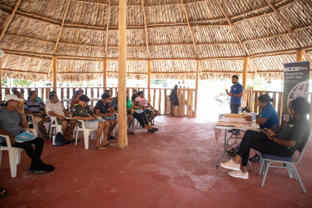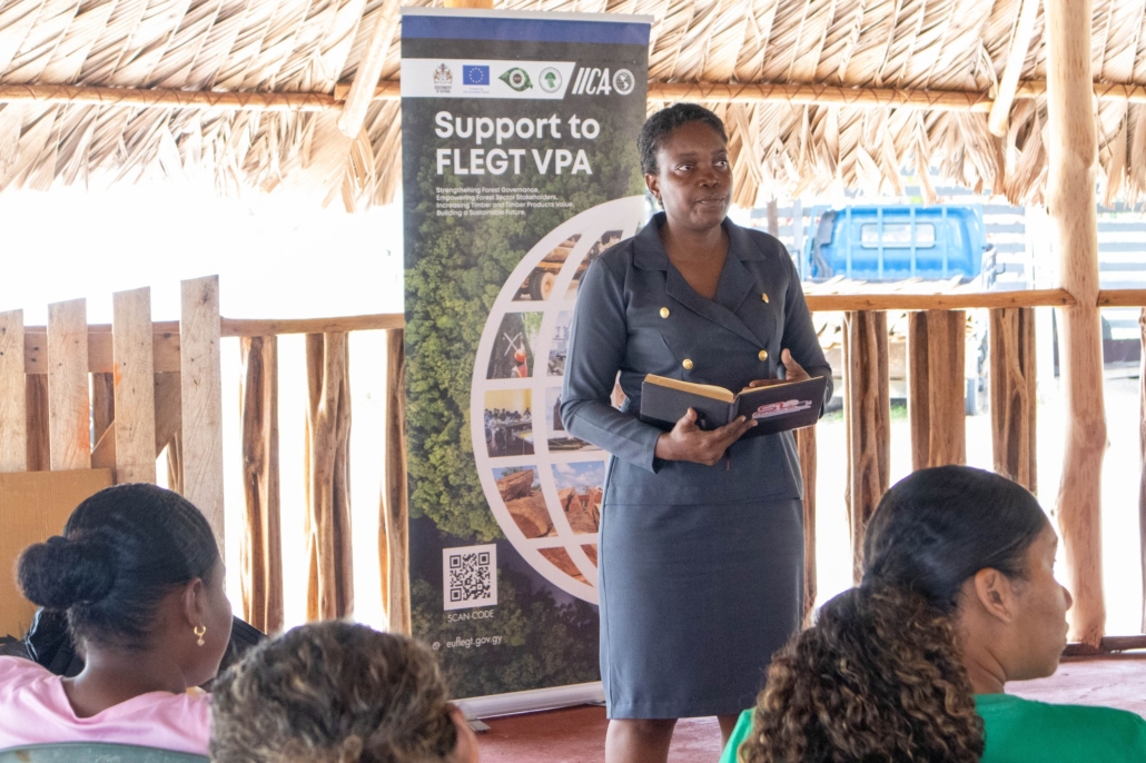 On Thursday, April 23, the Deputy Toshao, Village Council Members, and FSOs of St. Deny’s/Tapakuma welcomed the FLEGT team from the Guyana Forestry Commission, along with representatives from the EPA – Guyana, the National Insurance Scheme – Guyana, the Ministry of Labour & Manpower Planning Guyana, the Guyana Revenue Authority, and the Ministry of Amerindian Affairs. The session is part of the EU-funded outreach under the FLEGT VPA Programme, implemented by IICA Guyana.