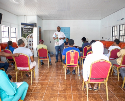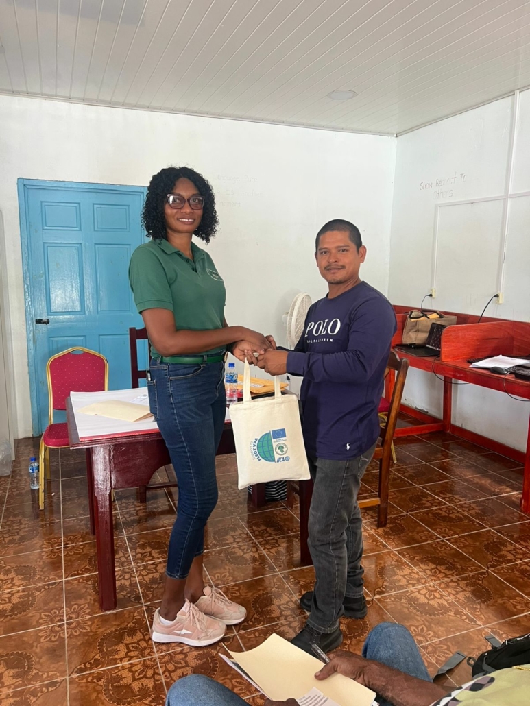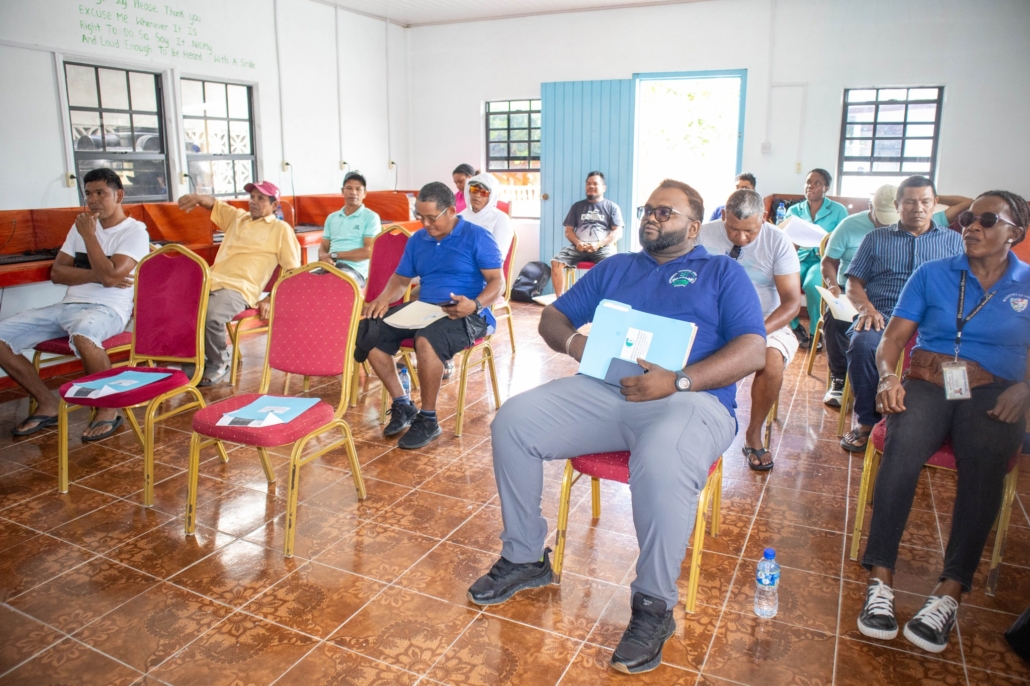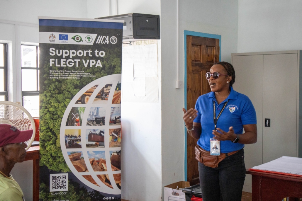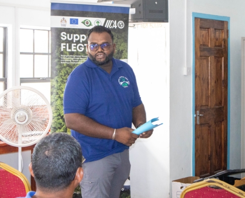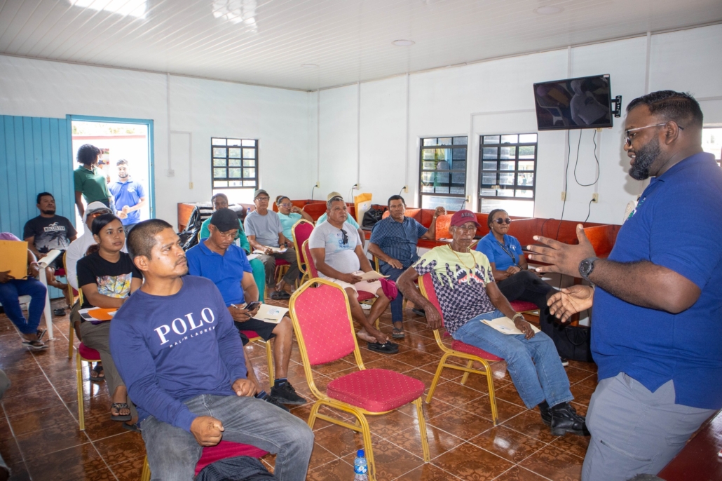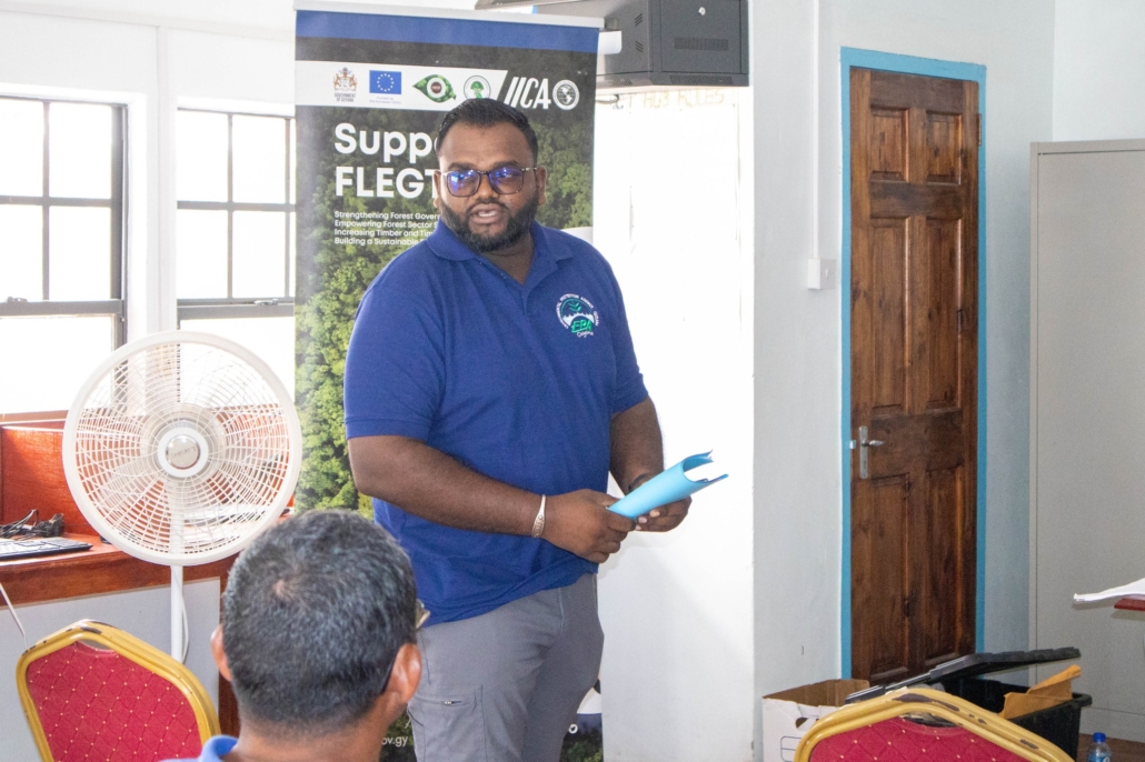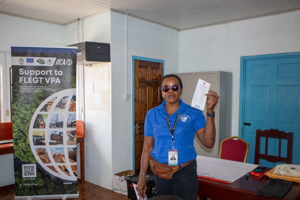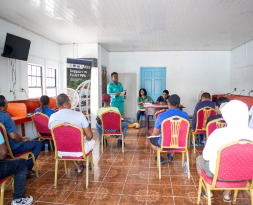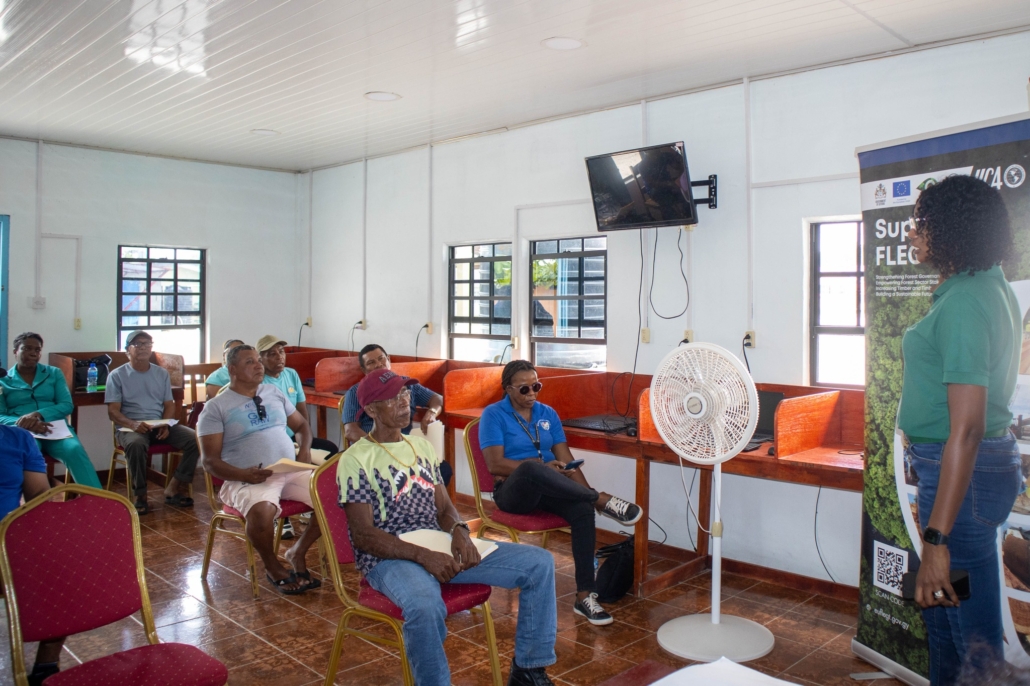 On Tuesday, April 21, the Toshao, Deputy Toshao, Village Council Members, and FSOs of Wakapao welcomed the FLEGT team from the Guyana Forestry Commission, along with representatives from the EPA – Guyana, the National Insurance Scheme – Guyana, the Ministry of Labour & Manpower Planning Guyana, the Guyana Revenue Authority, and the Ministry of Amerindian Affairs. The session is part of the EU-funded outreach under the FLEGT VPA Programme, implemented by IICA Guyana.